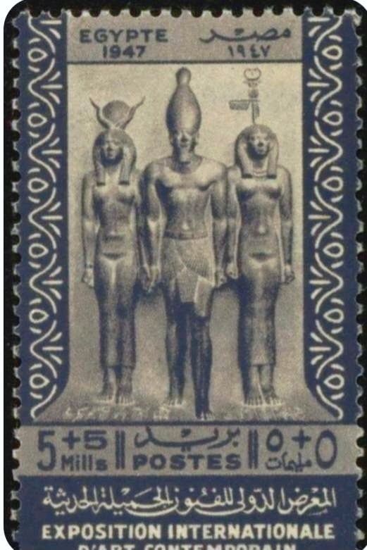 نتوقف اليوم مع واحدة من النوادر وهو طابع بريدي يعود لعام 1947، صُدر خصيصاً بمناسبة المعرض الدولي للفنون الجميلة الحديثة هذا الطابع لا يوثق حدثاً فنياً فحسب، بل يحتفي بأحد أيقونات المتحف المصري وهو ثالوث الملك منكاورع.