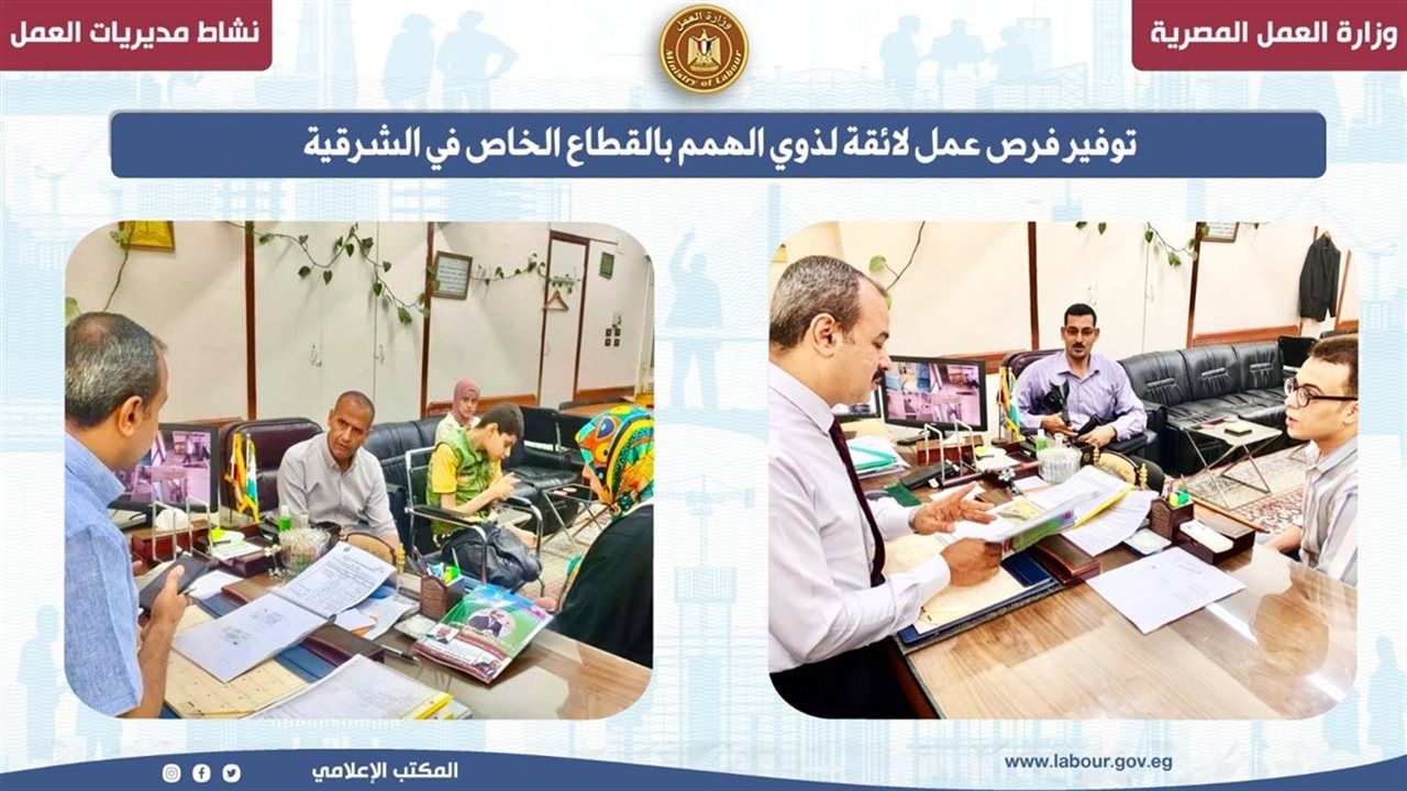 وأكد مدير المديرية، أن هذه اللقاءات تأتي تنفيذًا لتوجيهات الوزير محمد جبران وزير العمل، بضرورة الاهتمام بأبناء الوطن من ذوي الهمم ومتابعة استيفاء نسبة الـ5% المقررة لهم في القطاع الخاص، بما يحقق رؤية الدولة في توفير فرص عمل لائقة تضمن حياة كريمة.