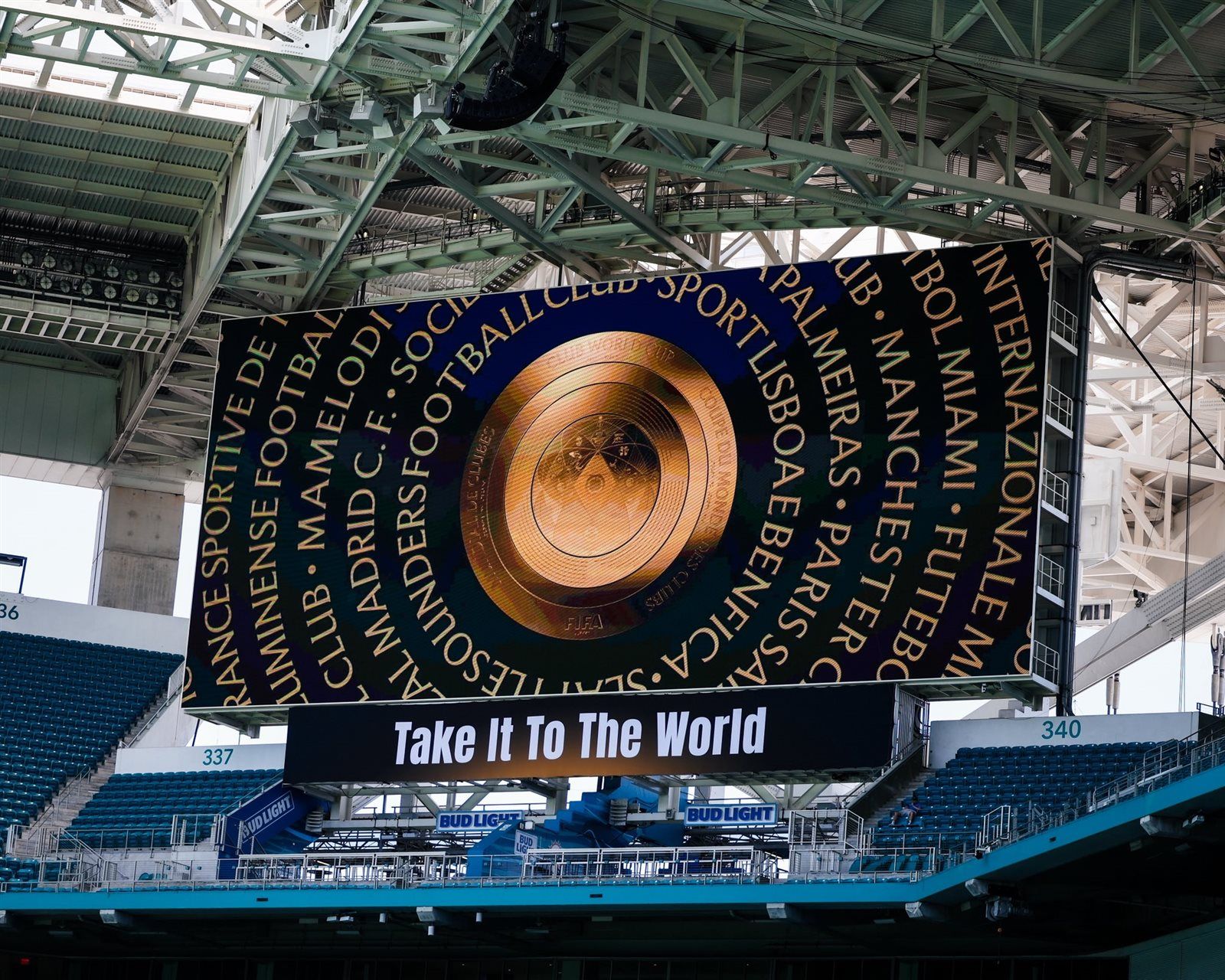 وظهر ملعب "هارد روك" والذي يتسع لـ64 ألف مشجع جاهزا لاستضافة مباراة الافتتاح في مونديال الأندية.