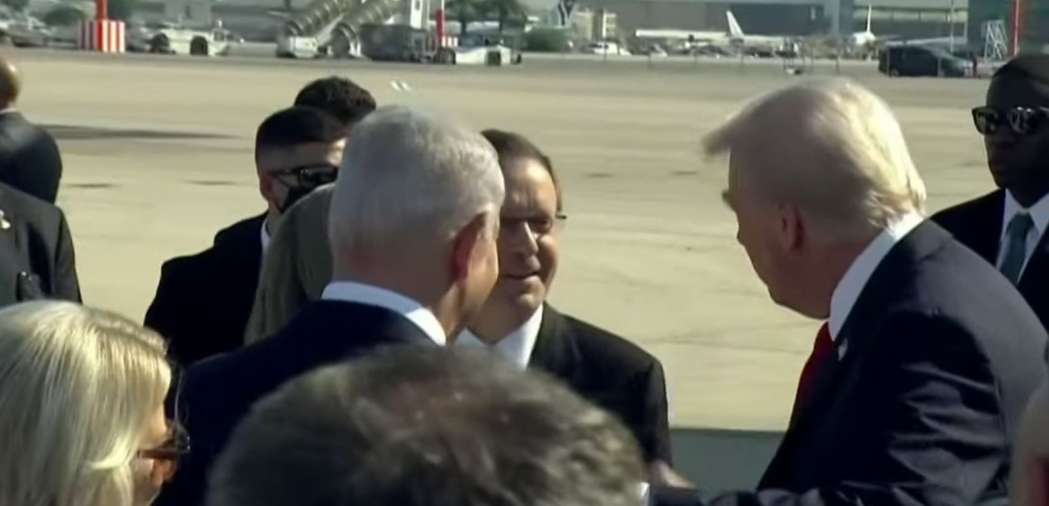وكشف مكتب رئيس الوزراء الإسرائيلي عن فحوى المحادثة القصيرة التي دارت بين ترامب ونتنياهو وهرتسوغ أثناء سيرهم على السجاد الأحمر في مدرج المطار.