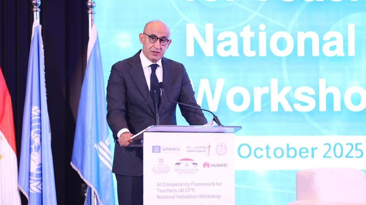 شهد محمد عبد اللطيف وزير التربية والتعليم والتعليم الفنى، والدكتور عمرو طلعت وزير الاتصالات وتكنولوجيا المعلومات ورشة العمل الوطنية للتصديق على إطار كفاءات الذكاء الاصطناعي للمعلمين (AI CFT) التي تنظمها وزارة التربية والتعليم والتعليم الفني بالتعاون مع المكتب الإقليمي لليونسكو بالقاهرة؛ لإعداد المعلمين وتطويرهم ودعم استخدام أدوات الذكاء الاصطناعي في التعليم.