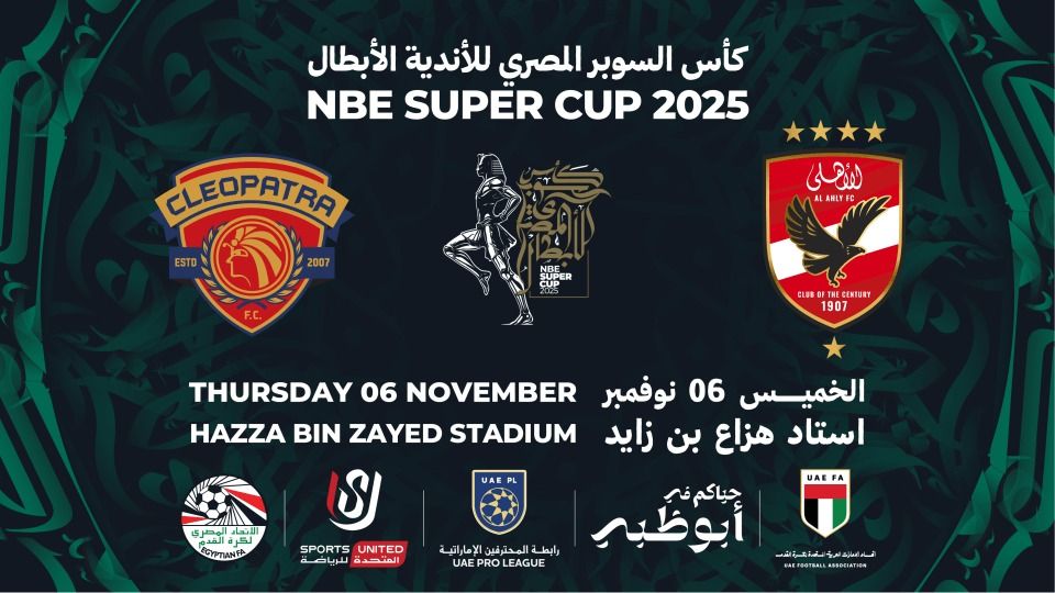 وتأتي هذه الاستضافة في إطار مذكرة التفاهم التي تم توقيعها بين الأطراف المعنية، والتي تنص على تنظيم بطولة السوبر المصري على أرض الإمارات، استمرارًا للتعاون الرياضي الوثيق بين البلدين، وتعزيزًا لمكانة أبوظبي كوجهة عالمية للأحداث الرياضية الكبرى.