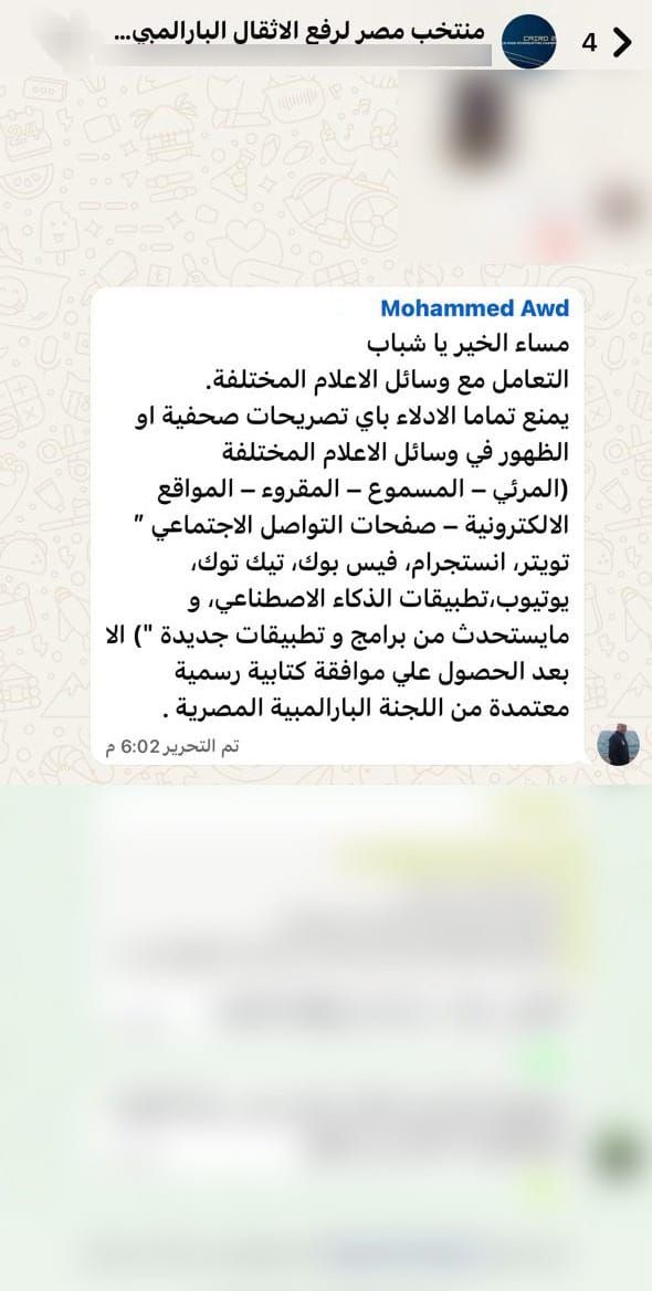 وجاء القرار بصيغة صارمة اعتبرها كثيرون تجاوزا لحدود التنظيم الإعلامي، حيث رأى عدد من المتابعين أن ما صدر يمثل تقييدا واضحا لحرية التعبير التي يكفلها الدستور المصري، والذي يضمن للمواطنين، ومن بينهم الرياضيون من أصحاب الهمم، حق التعبير عن آرائهم والتحدث عن إنجازاتهم وطموحاتهم أمام الجمهور.
