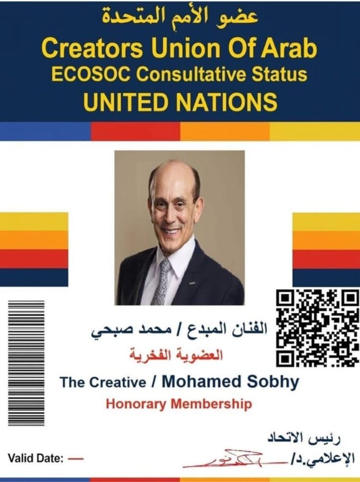قرر اتحاد المبدعين العرب، عضو الأمم المتحدة العضو الدائم لملتقى الاتحادات بجامعة الدول العربية، منح الفنان محمد صبحي كارنيه عضو الأمم المتحدة عن الفنانين العرب للفن والثقافة، وذلك بعد مسيرة فنية ناجحة قدمها الفنان الشهير على مدار السنوات الماضية.
