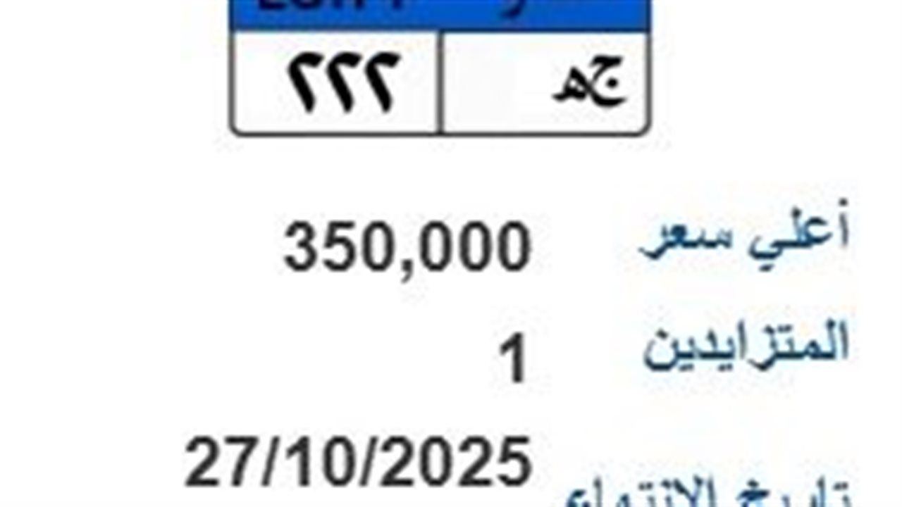 طرحت بوابة مرور مصر الإلكترونية، عددًا من اللوحات المميزة داخل المُزايدة التي تتم إلكترونيًا عبر البوابة الرسمية لمرور مصر، ومن ضمن اللوحات التي تُجرى المُزايدة عليها، لوحة تحمل رقم (ج ه-222) ووصل سعرها حتى الآن 350.000 ألف جنيه وتنتهي المزايدة عليها 27 أكتوبر الجاري.