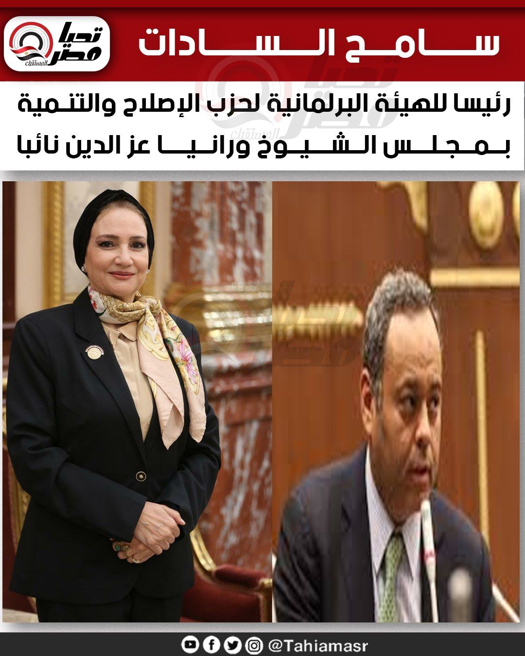 سامح السادات رئيسا للهيئة البرلمانية لحزب الإصلاح والتنمية بمجلس الشيوخ ورانيا عز الدين نائبا
