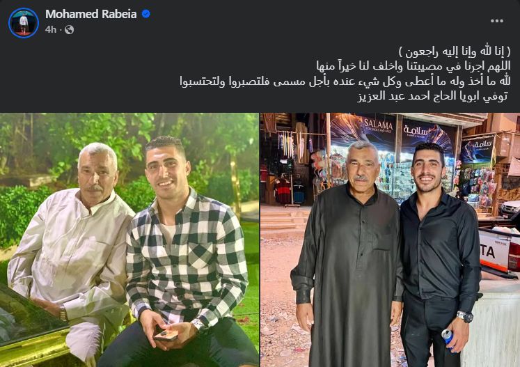 توفي أحمد عبد العزيز ، والد محمد ربيعة لاعب نادي زد والمنتخب المصري منذ قليل، حيث أعلن اللاعب عبر مواقع التواصل الإجتماعي.