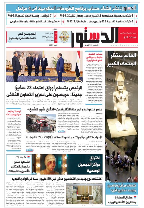 تطرح جريدة «الدستور» في عددها الصادر غدًا الثلاثاء سلسلة من التحقيقات والتقارير الخاصة التي تتناول أبرز الملفات الساخنة على المستويين الداخلي والخارجي، وفي مقدمتها الاقتصاد المصري، والعلاقات المصرية الأوروبية، والفعاليات الثقافية والدينية الشعبية.