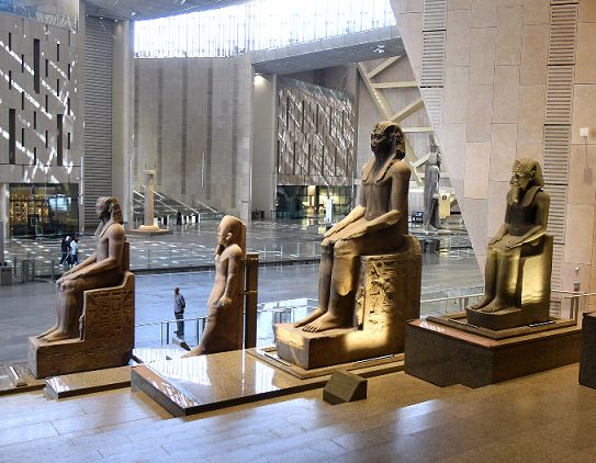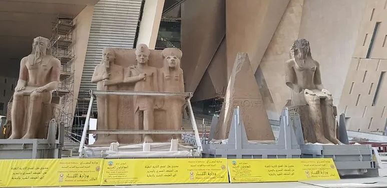 وكانت هذه القطع معروضة سابقًا في حديقة المتحف المصري بالتحرير، وقد تم نقلها إلى التحف المصري الكبير لاكتمال سيناريو العرض المتحفي للدرج العظيم، بما يبرز هيبة الملوك وعظمة الفن المصري القديم.