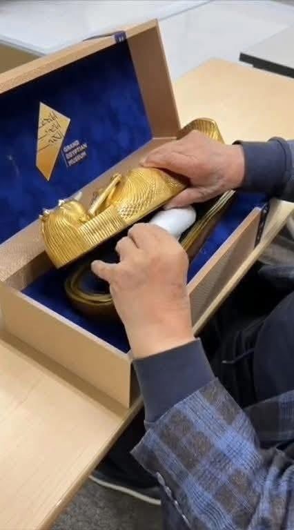 الصور التي نشرها يوشي مورا أظهرت تصميمًا مدهشًا يجمع بين الفخامة العصرية والهوية المصرية القديمة، إذ جاءت الدعوة داخل صندوق فاخر يحمل لمسات مستوحاة من الذهب والرموز الفرعونية، لتتحول الدعوة ذاتها إلى قطعة فنية تعكس روح المتحف الذي يحتفي بالحضارة المصرية في أبهى صورها.