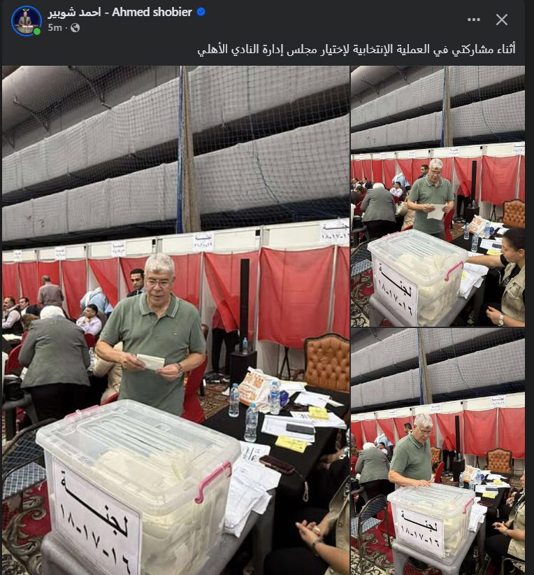 تحيا مصر، ونشر أحمد شوبير صور له داخل النادي الأهلي، وهو يدلي بصوته لقائمة محمود الخطيب، معلقاً:" أثناء مشاركتي في العملية الإنتخابية لإختيار مجلس إدارة النادي الأهلي".