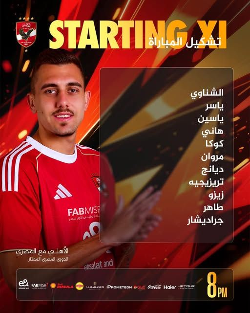 خط الوسط: مروان عطية وأليو ديانج ومحمود حسن تريزيجيه وأحمد سيد زيزو وطاهر محمد طاهر.
