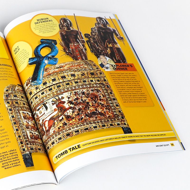 وفي سياق متصل، تبرز مجموعة من الكتب العالمية الموجّهة للأطفال التي تناولت حضارة مصر القديمة بطريقة مبسطة وجذابة، من بينها” National Geographic Kids – Everything Ancient Egypt”: وهو مرجع مصوّر غني بالحقائق والأنشطة، يُعرّف الأطفال على الأهرامات والمومياوات والحياة اليومية في مصر القديمة، وكتاب مصوّر يعتمد على لغة بصرية سهلة، يناسب الأطفال في المراحل الابتدائية الأولى تحت عنوان” Ancient Egypt for Kids” .