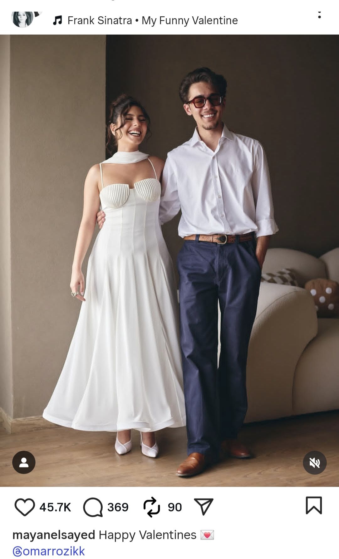 شاركت مايان جمهورها صورة تجمعها بعمر رزيق عبر حسابها على تطبيق "إنستجرام" وكتبت تعليقا عليها:" عيد حب سعيد".