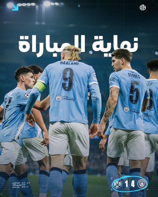 واصل مانشستر سيتي الإنجليزي عروضه القوية في دوري أبطال أوروبا، بعدما حقق فوزًا كبيرًا على ضيفه بوروسيا دورتموند الألماني بنتيجة 4-1، في المباراة التي أقيمت مساء الأربعاء الموافق 5 نوفمبر 2025، ضمن منافسات الجولة الرابعة من دور المجموعات.