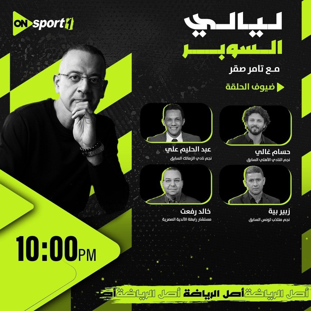 في تمام العاشرة مساء، تقدم قناة أون سبورت 1، برنامج سهرة ليالي السوبر مع الإعلامي تامر صقر، الذي يستضيف الكباتن حسام غالي نجم الأهلي الأسبق، عبد الحليم علي مهاجم الزمالك الأسبق، زبير بية نجم منتخب تونس السابق، خالد رفعت مستشار رابطة الأندية المصرية.