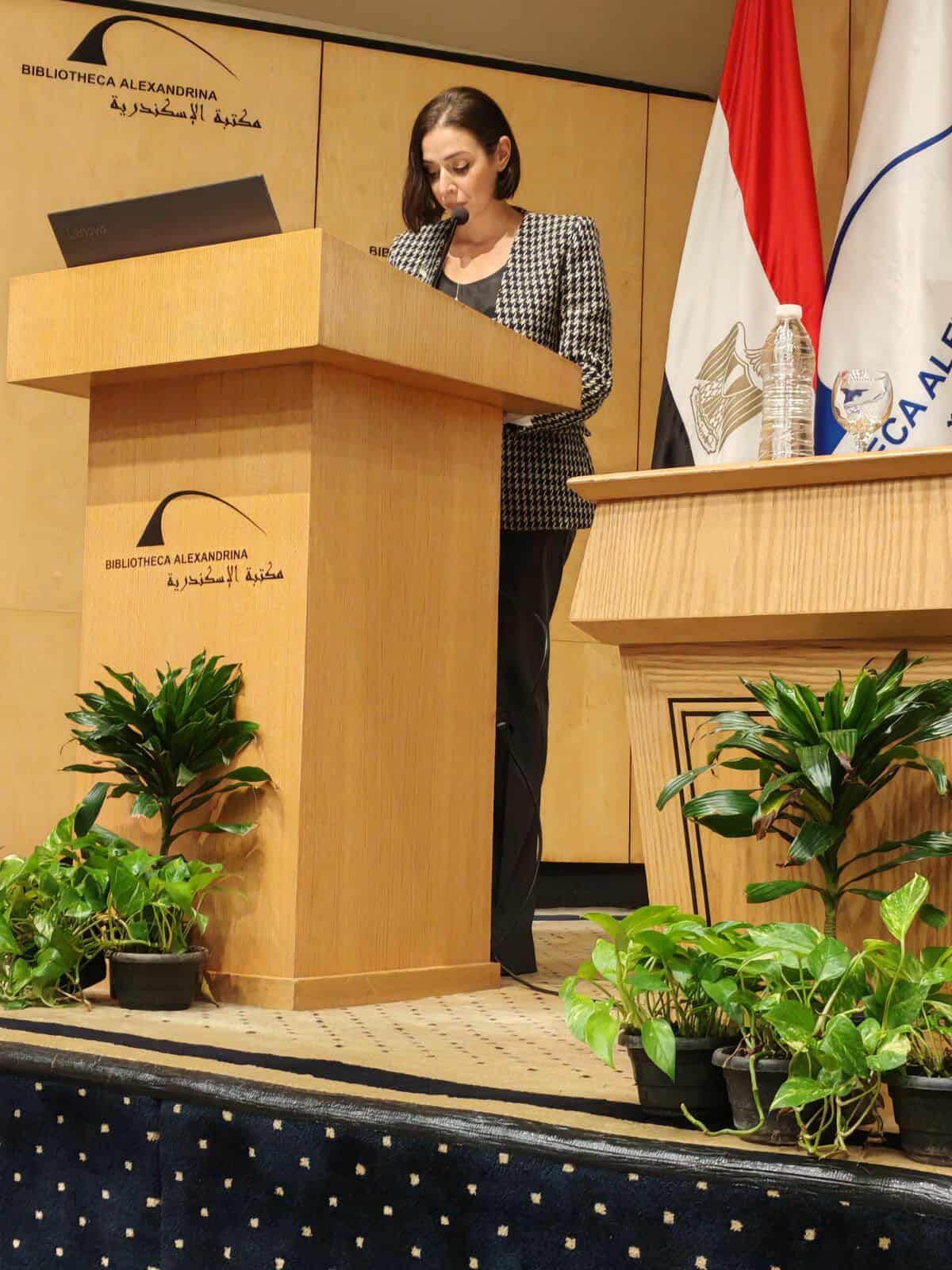 حيث ألقت المهندسة سارة البطوطي عضوة المجلس كلمة نيابة عن المستشارة أمل عمار، رئيسة المجلس القومي للمرأة، عبرت خلالها عن تقديرها العميق لعقد هذا المؤتمر العلمي المهم الذي يأتي تحت عنوان "التكنولوجيا الحيوية واستدامة الحياة في المناطق القاحلة"، وهو موضوع يتقاطع بعمق مع قضايا التنمية المستدامة وتمكين المرأة، ومع جهود الدولة المصرية في مواجهة التحديات البيئية والغذائية.