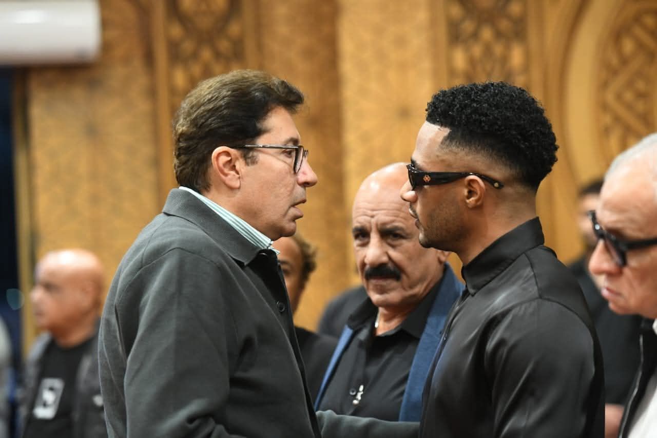 هاني رمزي يواسي محمد رمضان لوفاة والده في عزاء السيناريست أحمد عبد الله