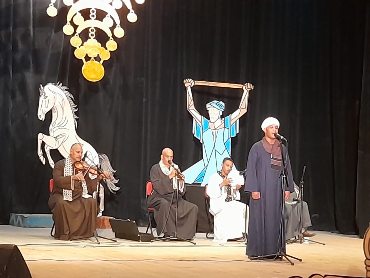 بدأ الحفل السلام الوطني، ثم عرض فيلم تسجيلي توثيق لجميع فعاليات المهرجان، ثم عرض لفرقة التنورة والمولوية، وعرض لفرقة المنشد ربيع زين قدم مجموعة من الابتهالات: فرض الجمال، قمرون، إضافة إلي بعض من الاغناني الشعبية التراثية القديمة، والمديح والموال القصصي، وكذلك مجموعة من أروع أغاني والموشحات.