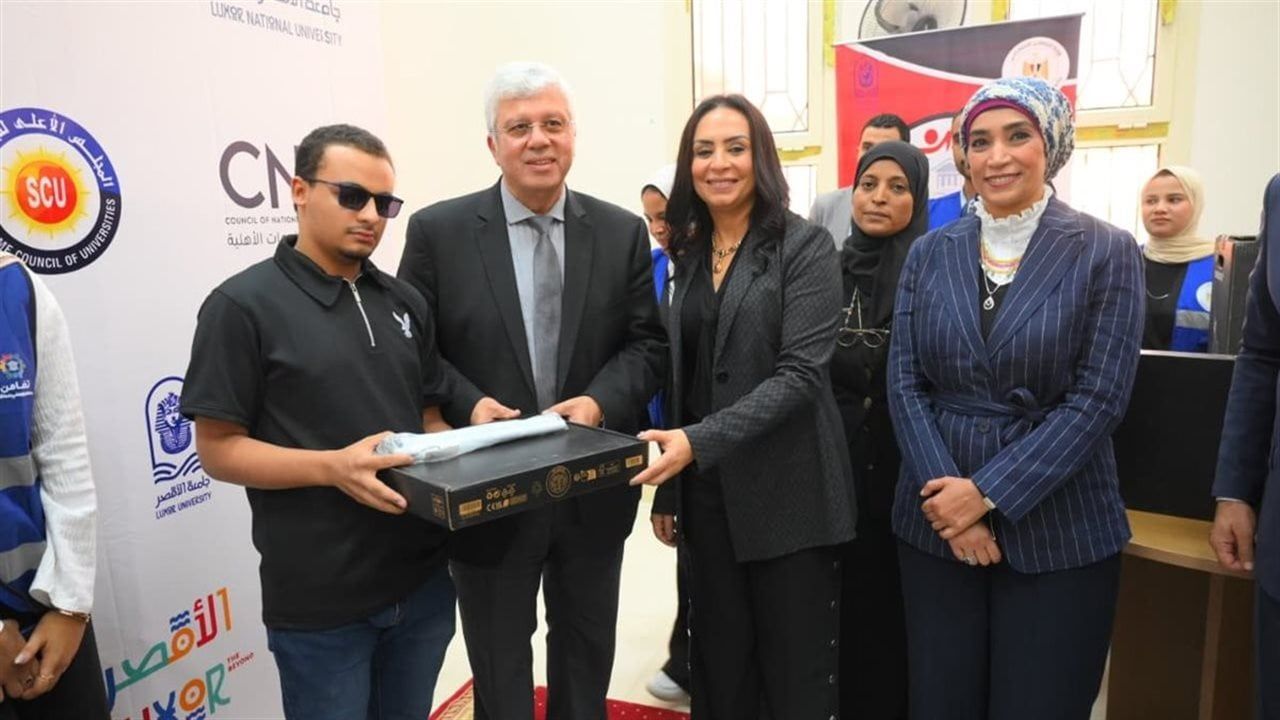 كما قامت الدكتورة مايا مرسي بتسليم عدد من الطلاب من ذوي الإعاقة البصرية المستفيدين من مشروع وحدة التضامن الاجتماعي بالجامعة لاب توب ناطق، وذلك في إطار تكافؤ الفرص التعليمية والتيسير على الطلاب في العملية التعليمية.