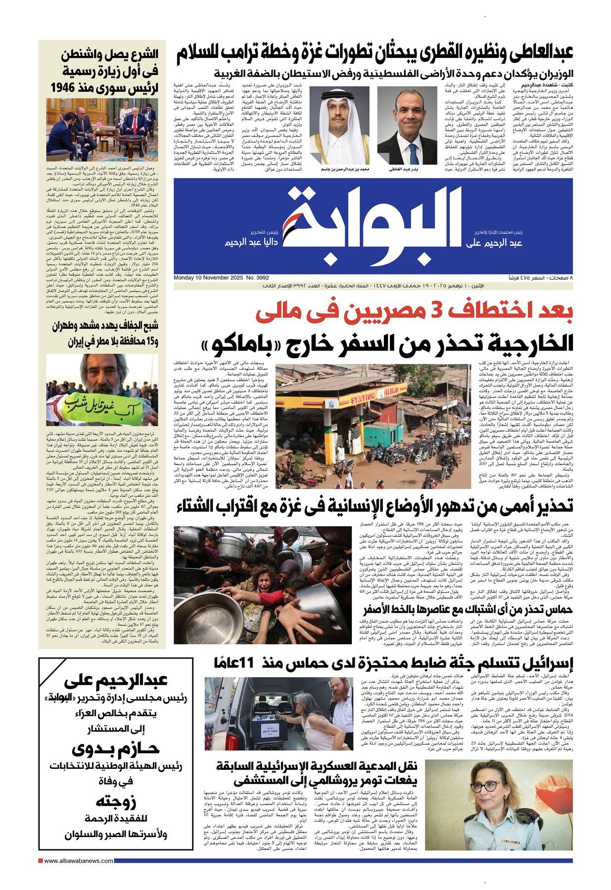 تقرأ غدًا في العدد الجديد من جريدة «البوابة»، الصادر بتاريخ الأثنين 10 نوفمبر 2025، مجموعة من الموضوعات والانفرادات المهمة، ومنها: