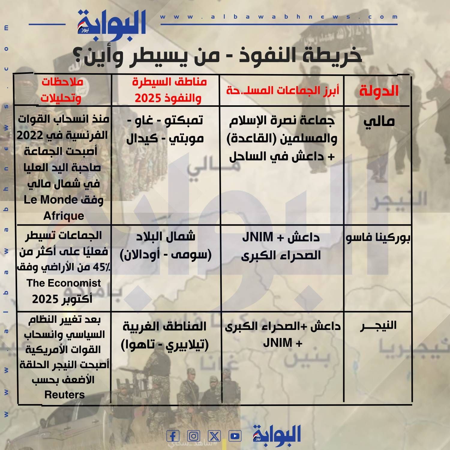 و اليوم، يتحدث محللون في «Africa Report» عن خريطة «ما بعد مالي»، التي تمتد من شمال بوركينا فاسو إلى تيلابيري في النيجر، حيث تتجمع أخطر خلايا القاعدة وداعش في مساحة شاسعة تفوق مساحة فرنسا نفسها.