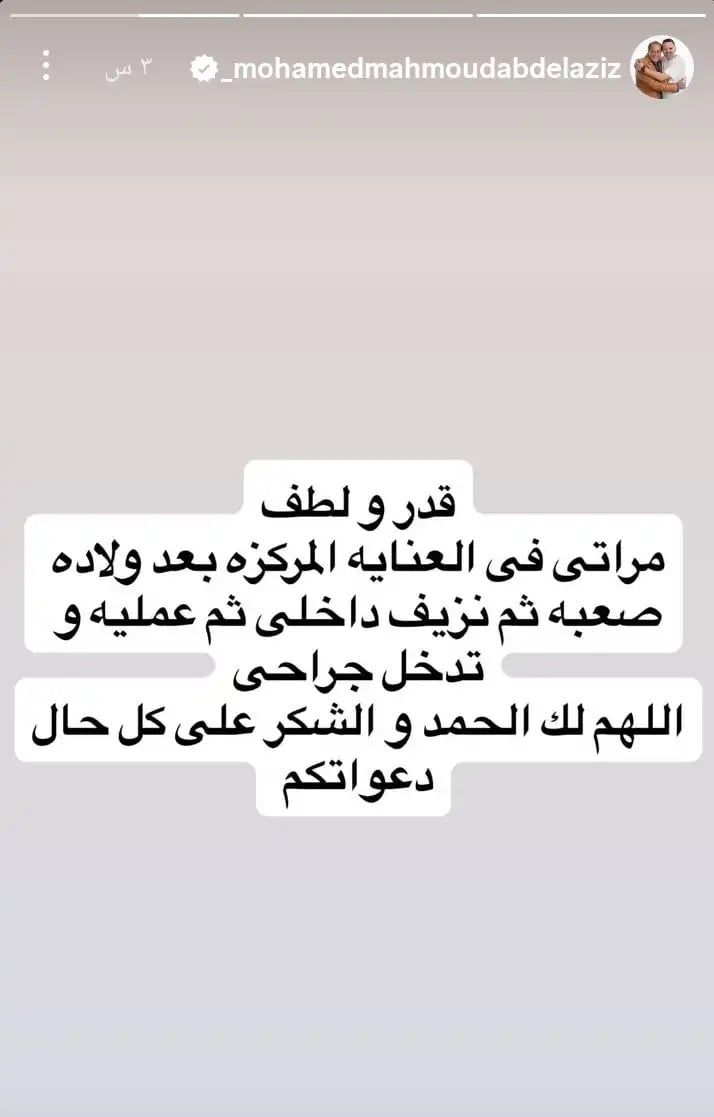 بعد تعرضها لنزيف.. محمد محمود عبد العزيز يطلب الدعاء لزوجته