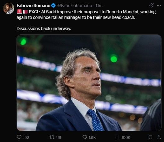 وأوضح رومانو أن المحادثات عادت رسميًا بين الجانبين، مع وجود مؤشرات إيجابية على رغبة مانشيني في دراسة العرض بجدية، خصوصًا بعد تجربته السابقة مع المنتخب السعودي
