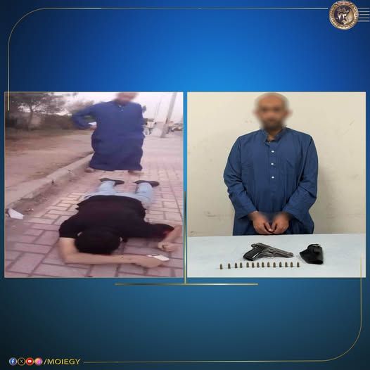 أسفرت جهود البحث والتحرى عن تحديد وضبط مرتكب الواقعة (حاصل على بكالوريوس هندسة – مقيم بدائرة قسم شرطة الدخيلة – يعانى من أمراض نفسية وسبق إيداعه بأحد المصحات النفسية)، كما تم ضبط السلاح المستخدم فى الجريمة.