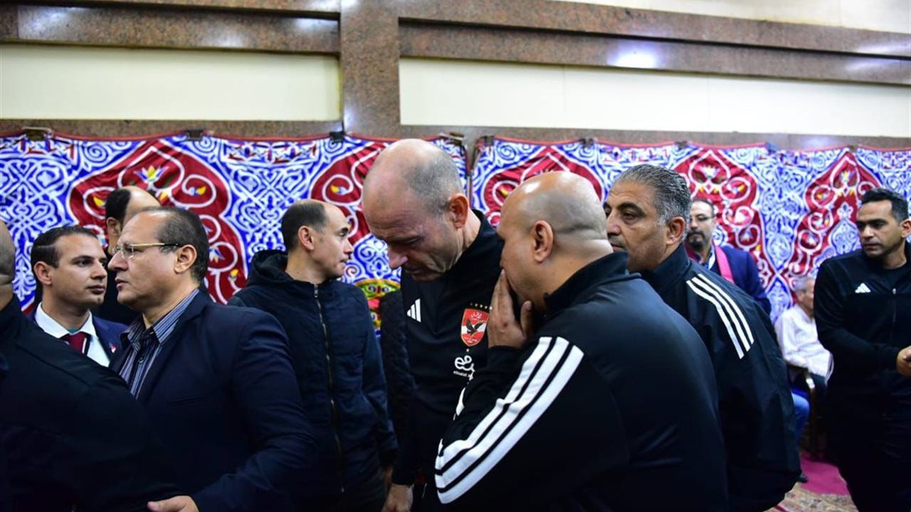 كما تواجد الجهاز الفني للأهلي بقيادة ييس توروب، المدير الفني، ووليد صلاح الدين مدير الكرة، في عزاء نجم الزمالك الراحل.