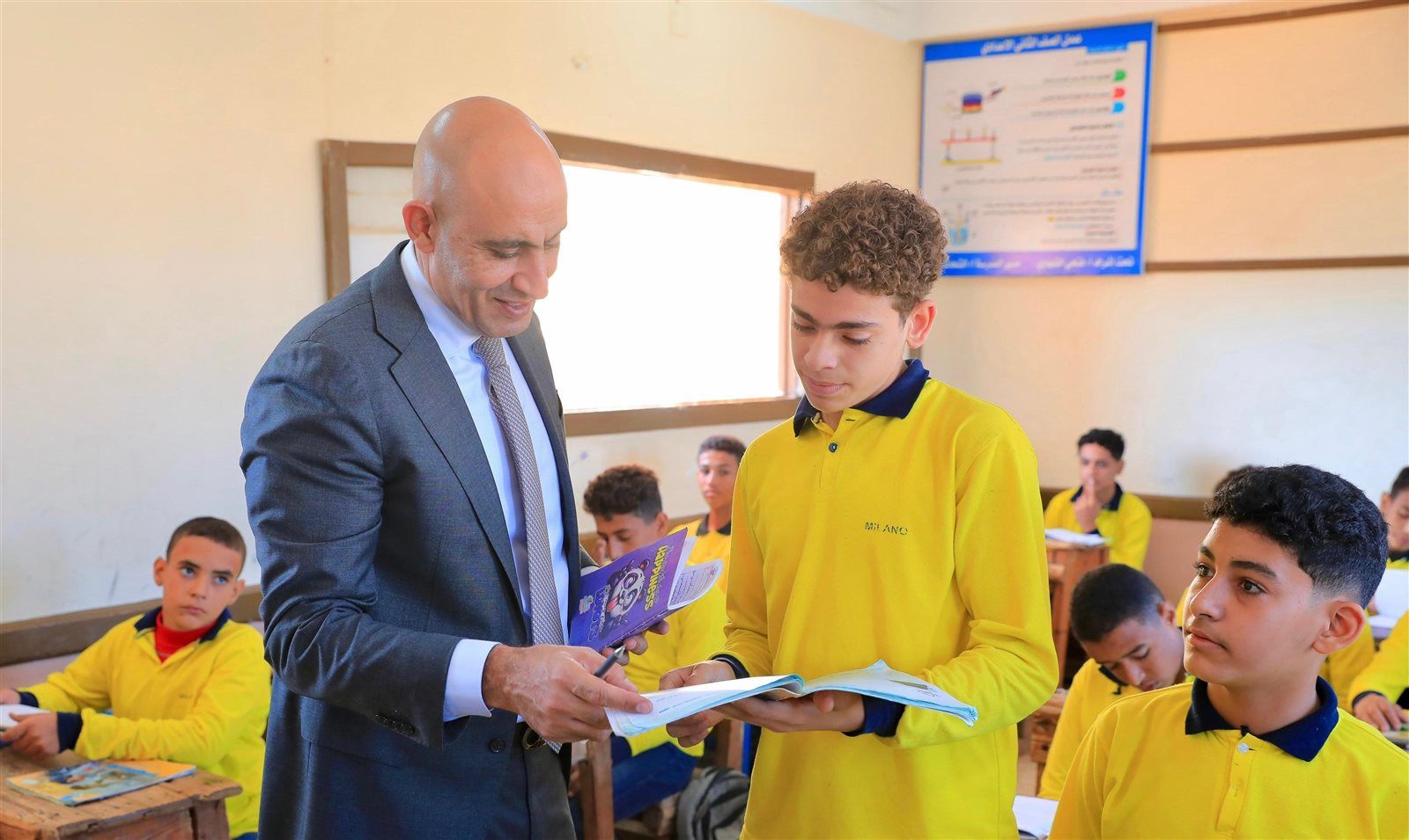 ثم توجه الوزير، عقب ذلك، إلى مدرسة "عثمان القرضاوى الإعدادية بنين" والتى تضم عدد ٧٧٢ طالبا ، حيث حرص على مناقشة الطلاب والمعلمين حول المناهج المطورة وقدرتهم على استيعاب المواد الدراسية، كما تحاور مع عدد من المعلمات حول التقييمات الأسبوعية، وتابع أيضا كراسات الطلاب فى مادة اللغة العربية ضمن برنامج تنمية مهارات القراءة لطلاب الصفوف العليا.