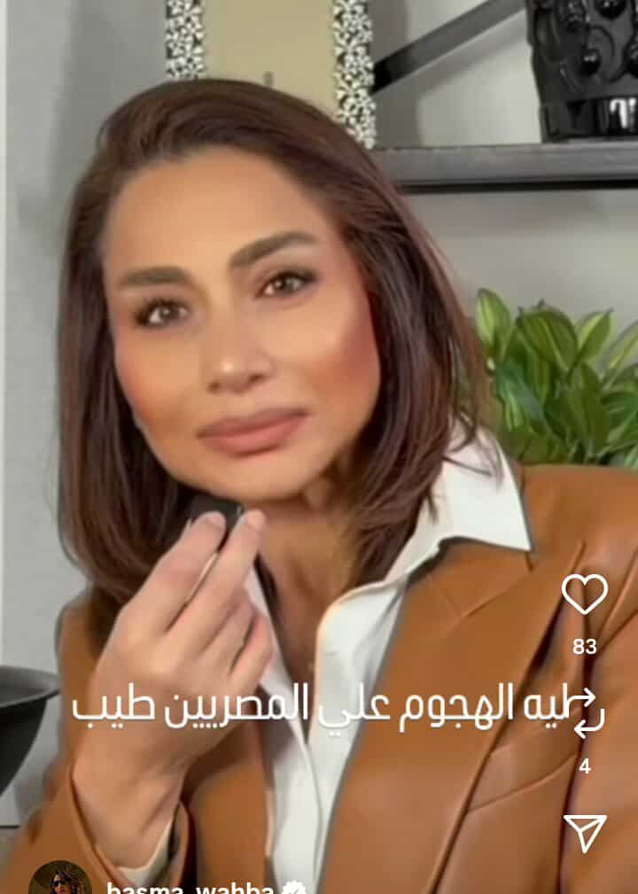 وقالت بسمة وهبة في لقاء تليفزيوني له، رصده موقع تحيا مصر: مقابلش أن حد يغلط في أي مصري ولا مصري يغلط في لبناني، اخرسوا دي متتقالش لمصريين اتكلمي في محدود قدراتك، بلد في حجم مصر متهاجمهاش ولا تتطاولي عليها.
