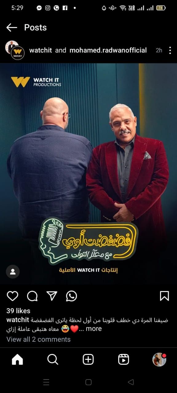 وشاركت منصة watch lt، البوستر الرسمي للفنان محمد رضوان، في برنامج فضفضت أوي، وفقا لما رصده موقع تحيا مصر، عبر صفحتها الرسمية على موقع التواصل الاجتماعي إنستجرام، وعلقت عليه: ضيفنا المرة دي خطف قلوبنا من أول لحظة ياترى الفضفضة معاه هتبقى عاملة إزاي، اتفرج على بودكاست فضفضت أوي من إنتاجات WATCHIT الأصلية.