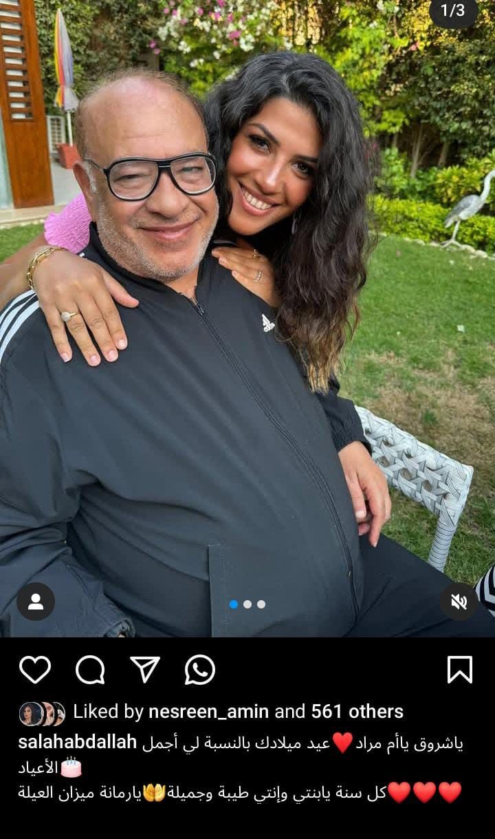وشارك الفنان صلاح عبدالله، صورا تجمعه بابنته، وفقا لما رصده موقع تحيا مصر، عبر صفحته الرسمية على موقع التواصل الاجتماعي إنستجرام، وعلق عليها: ياشروق ياأم مراد، عيد ميلادك بالنسبة لي أجمل الأعياد، كل سنة يابنتي وإنتي طيبة وجميلة، يارمانة ميزان العيلة.