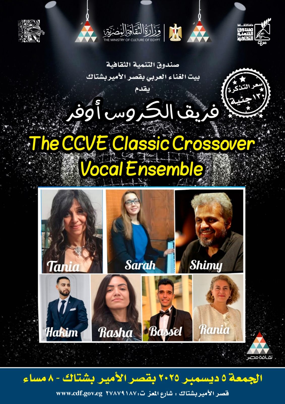 The CCVE – Classic Crossover Vocal Ensemble وذلك في تمام الثامنة مساء غداً الجمعة الموافق 5 ديسمبر الجاري .