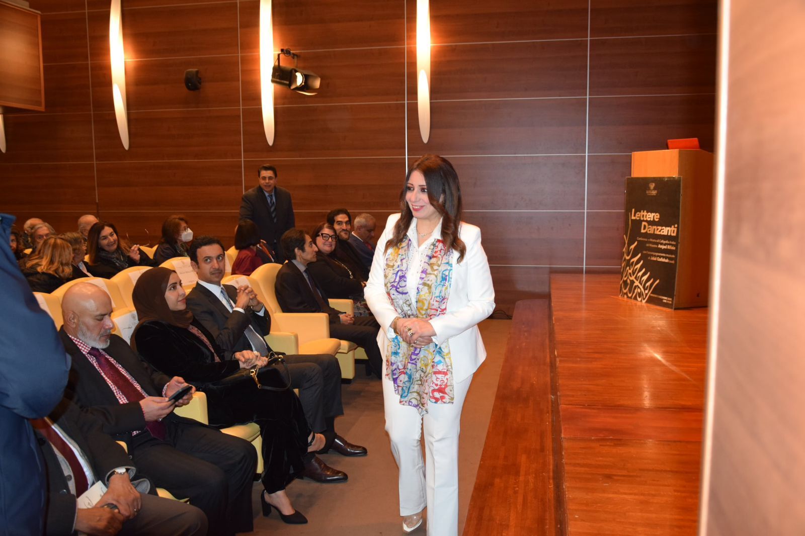 شهد الاحتفال حضورًا رفيع المستوى من سفراء الدول العربية، وعدد من الدبلوماسيين الإيطاليين والأجانب، إلى جانب أعضاء من مجلس الشيوخ والبرلمان الإيطالي، ومجموعة من الشخصيات الثقافية والفنية والمهتمين بالثقافة العربية.