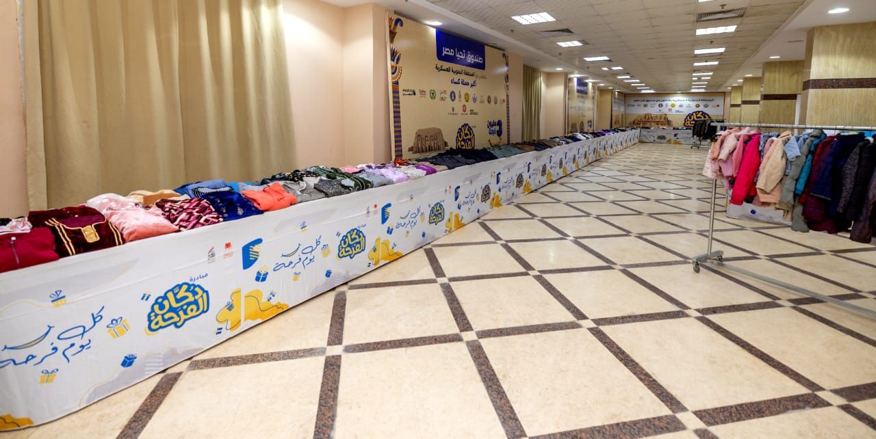 كما تم تنظيم معرض بالمجان لتوزيع (115) ألف قطعة ملابس وأدوات منزلية ولعب أطفال، وكذلك توفير الدعم لأبناء الوطن من ذوى الهمم بتوزيع عدد من الكراسى المتحركة ومساعدات الحركة للمكفوفين ،