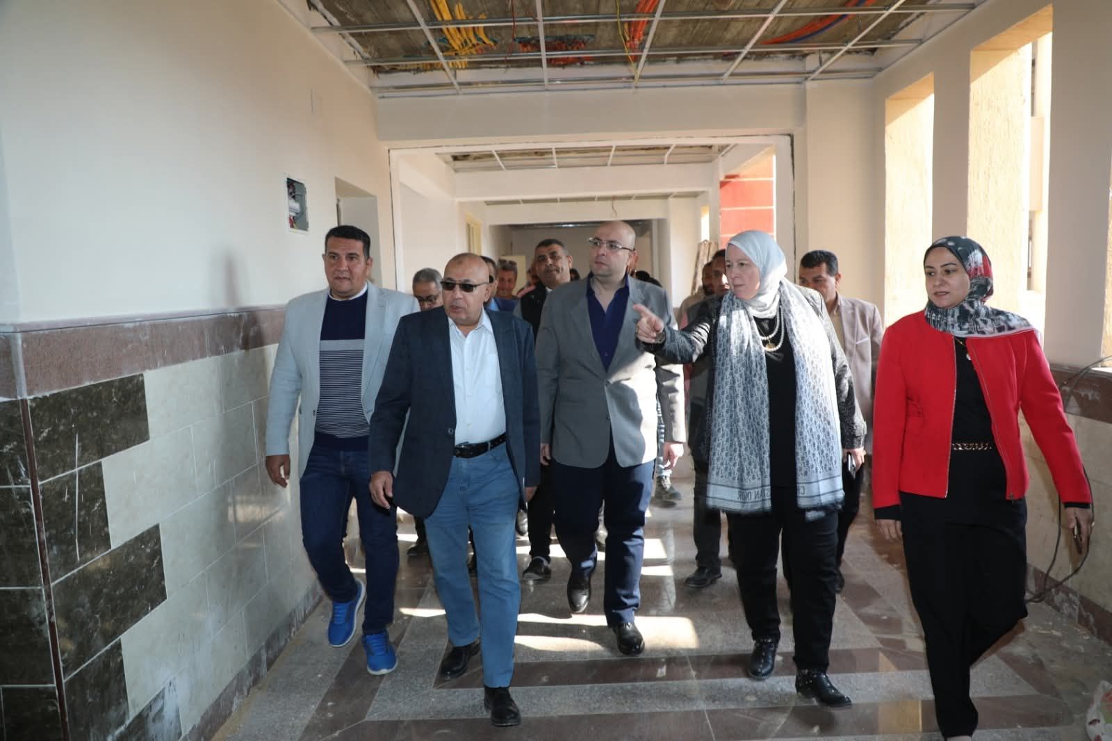 وتجول المحافظ داخل مكونات وأقسام المدرسة الكائنة بالحي الثالث، والتي تنفذها هيئة الأبنية التعليمية بتكلفة تزيد عن 90 مليون جنيهاً،على مساحة إجمالية تزيد عن 20 ألف متر مربعاَ "مساحة المبنى 1680م2 "،وتضم 42 فصلاً دراسيا في مختلف مراحل التعليم من رياض الأطفال والتعليم الأساسي والثانوي العام،حيث يجرى حاليا أعمال التشطيبات الداخلية من الدهانات وتركيب النوافذ وبلاط وسيراميك الأرضيات والحوائط والمرافق وأعمال اللاند سكيب ، حيث وصلت نسبة التنفيذ إلى 86% من إجمالي الأعمال الإنشائية والبنائية