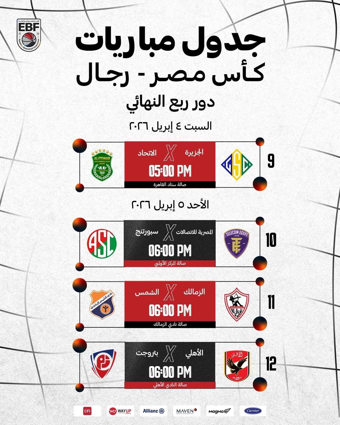 ومن المقرر أن يقام الدور ربع النهائي على مدار يومي السبت والأحد المقبلين، عندما يلتقي الجزيرة والاتحاد السكندري في الساعة الخامسة مساء السبت المقبل على صالة ستاد القاهرة الدولي، قبل أن تستكمل المنافسات يوم الأحد بمواجهات المصرية للاتصالات وسبورتنج في الساعة السادسة مساءً على صالة المركز الأولمبي، والزمالك والشمس على صالة نادي الزمالك، والأهلي وبتروجت على صالة النادي الأهلي في تمام الساعة السادسة مساءً.