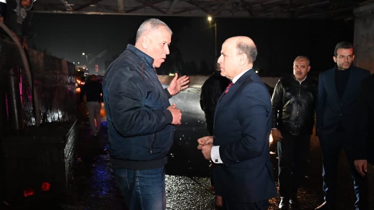 وتفقد المحافظ الشوارع الرئيسية والأنفاق، ووقف على سير العمل لحظة بلحظة مع فرق الطوارئ والمعدات الميدانية المنتشرة للتعامل مع أي تراكم للمياه بشكل عاجل.