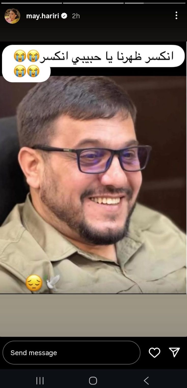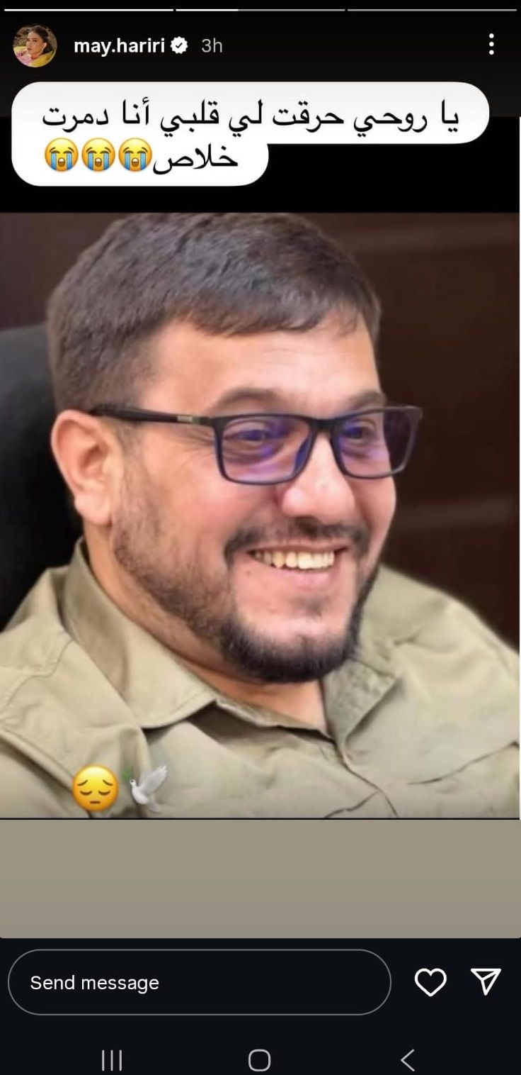 نعت الفنانة ميّ حريري، أحد أقربائها، وقالت عبر خاصية "ستوري" عبر حسابها على "انستغرام: "انكسر ظهرنا يا حبيبي انكسر".