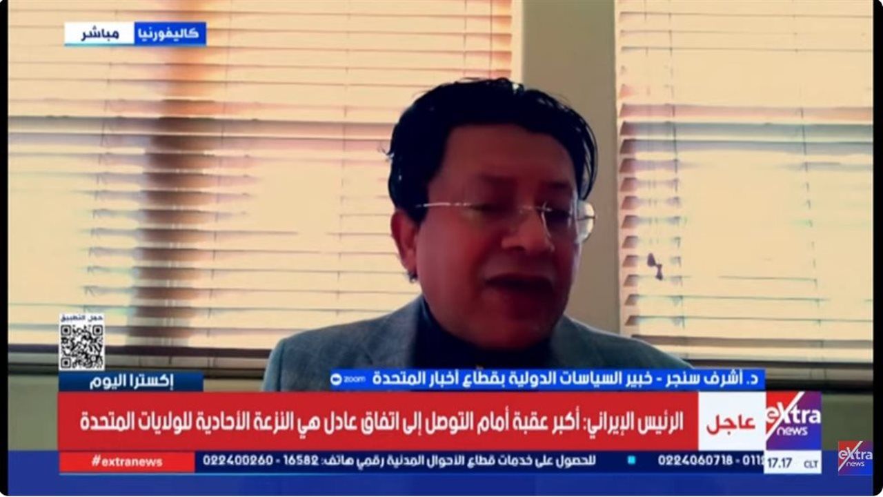 أكد خبير السياسات الدولية بقطاع أخبار المتحدة أشرف سنجر، أن إخلاء منطقة الشرق الأوسط من أسلحة الدمار الشامل يتطلب أن توقف إسرائيل برامجها النووية أو أن تخضع لتفتيش دولي أسوة بإيران، مشيرًا إلى أن هذا الطرح قد يُعتبر انتصارًا للموقف الإيراني إذا تم تنفيذه.