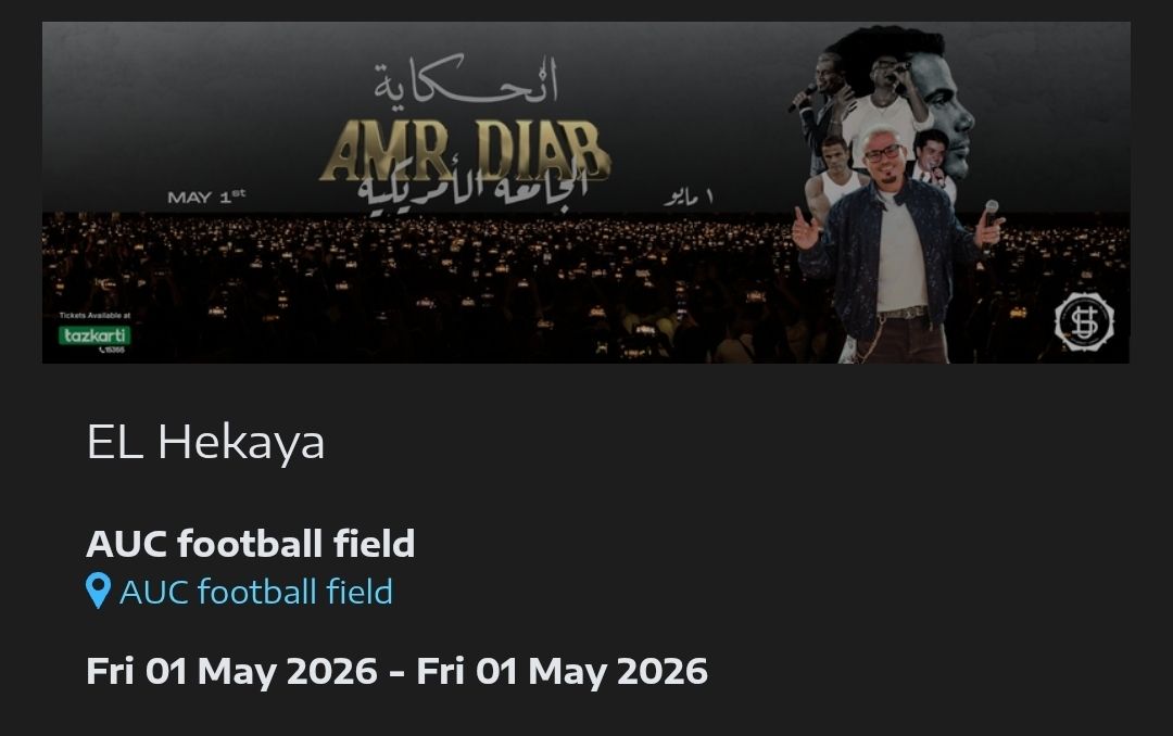يستعد النجم العالمي عمرو دياب لإحياء واحدة من أضخم السهرات الغنائية المنتظرة في قلب القاهرة، وتحديداً في حرم الجامعة الأمريكية، تحت عنوان الحكاية، والتي من المقرر انطلاق فعالياتها في الأول من مايو المقبل. وتأتي هذه الحفلة في وقت يعيش فيه الهضبة حالة من التوهج الفني الاستثنائي، حيث أعلنت الشركة المنظمة عن تفاصيل وشروط الحضور التي أثارت جدلاً واسعاً ومنحت الحفل طابعاً من الرقي والحصرية، خاصة مع تنوع فئات الدخول التي تبدأ من 1000 جنيه وتصل إلى مبالغ غير مسبوقة للمجموعات والوفود الخاصة.