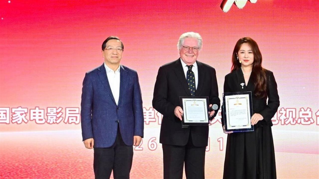 كرّم الوزير الصيني شين هايشيونغ، رئيس مجموعة الصين للإعلام (CMG)، الفنان الكبير حسين فهمي، رئيس مهرجان القاهرة السينمائي الدولي، خلال فعاليات "كرنفال ثقافة السينما في دلتا نهر يانغتسي 2026" المنعقد في مدينة نينغبو بمقاطعة تشجيانغ في جمهورية الصين الشعبية، والتي ينظمها مجموعة الصين للإعلام بالتعاون مع لجنة الحزب بمقاطعة تشجيانغ.