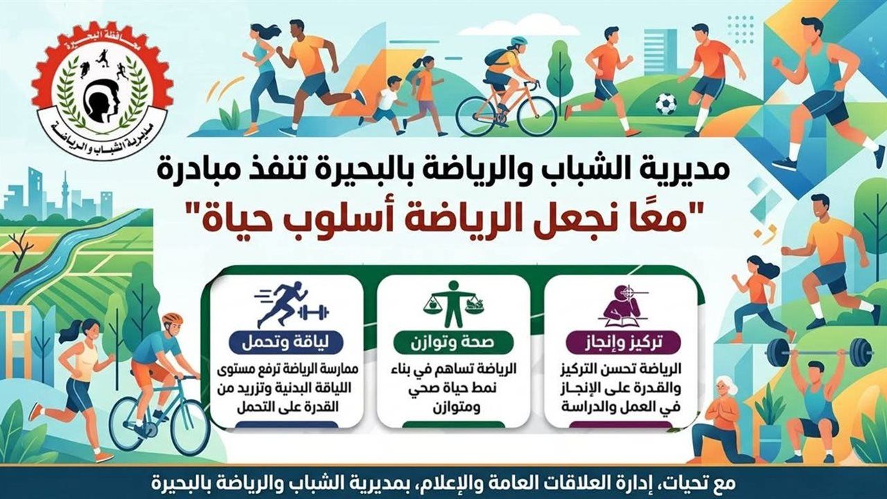 أطلقت مديرية الشباب والرياضة بالبحيرة من خلال إدارة العلاقات العامة والإعلام بالمديرية مبادرة توعوية جديدة بعنوان "معًا نجعل الرياضة أسلوب حياة" وذلك في إطار حرص الدولة على تعزيز ثقافة الممارسة الرياضية وغرس أنماط الحياة الصحية في المجتمع المدني داخل جميع أنحاء مدن وقرى المحافظة.