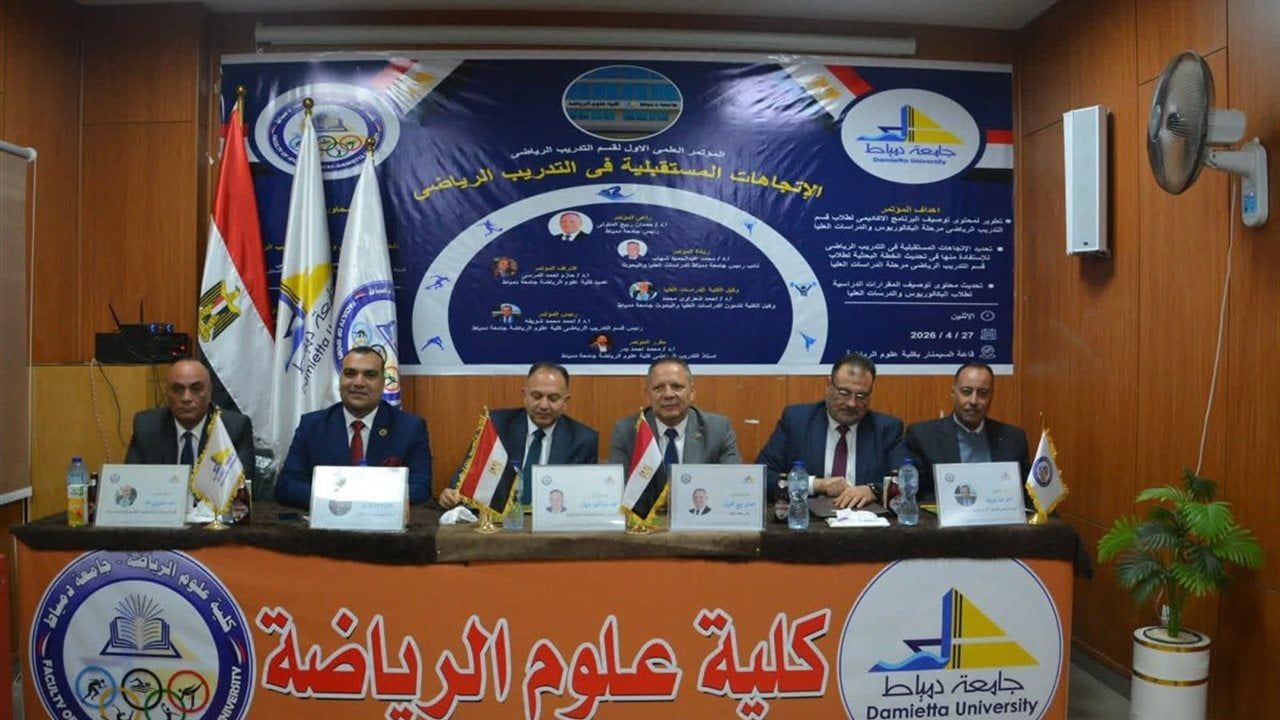 وفي كلمته، أكد الدكتور حمدان ربيع المتولي، رئيس جامعة دمياط، أن الجامعة تولي اهتمامًا كبيرًا بدعم البحث العلمي التطبيقي في مختلف المجالات، وعلى رأسها المجال الرياضي لما له من دور مهم في إعداد كوادر قادرة على الارتقاء بمستوى الرياضة المصرية.