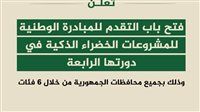 ويستمر فتح باب التقديم للدورة الرابعة عبر المنصة الإلكترونية للمبادرة الوطنية للمشروعات الخضراء الذكية للراغبين من جميع محافظات الجمهورية لفترة محدودة، على أن تعقب مرحلة التقديم أعمال الفحص والتقييم على مستوى المحافظات ثم على المستوى الوطني.