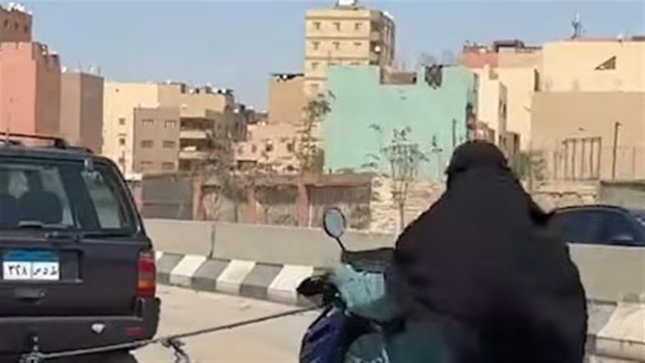 جدعنة المصريين.. منتقبة تقود دراجة نارية على الطريق (فيديو)