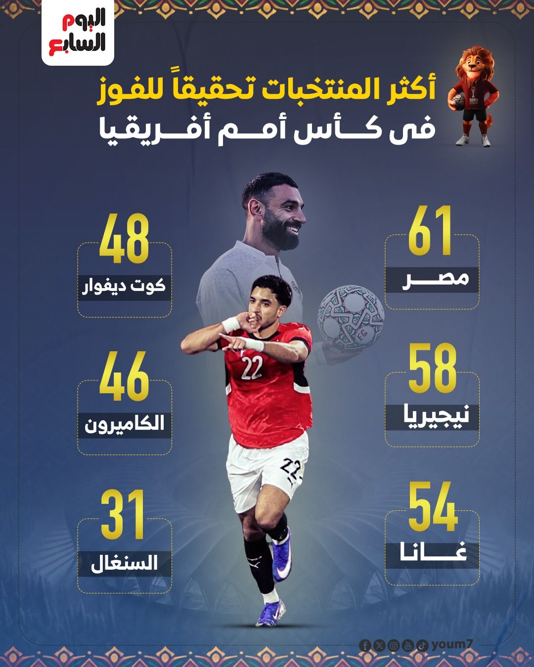 ملوك الانتصارات في أمم أفريقيا.. الفراعنة يتربعون على العرش (إنفوجراف)