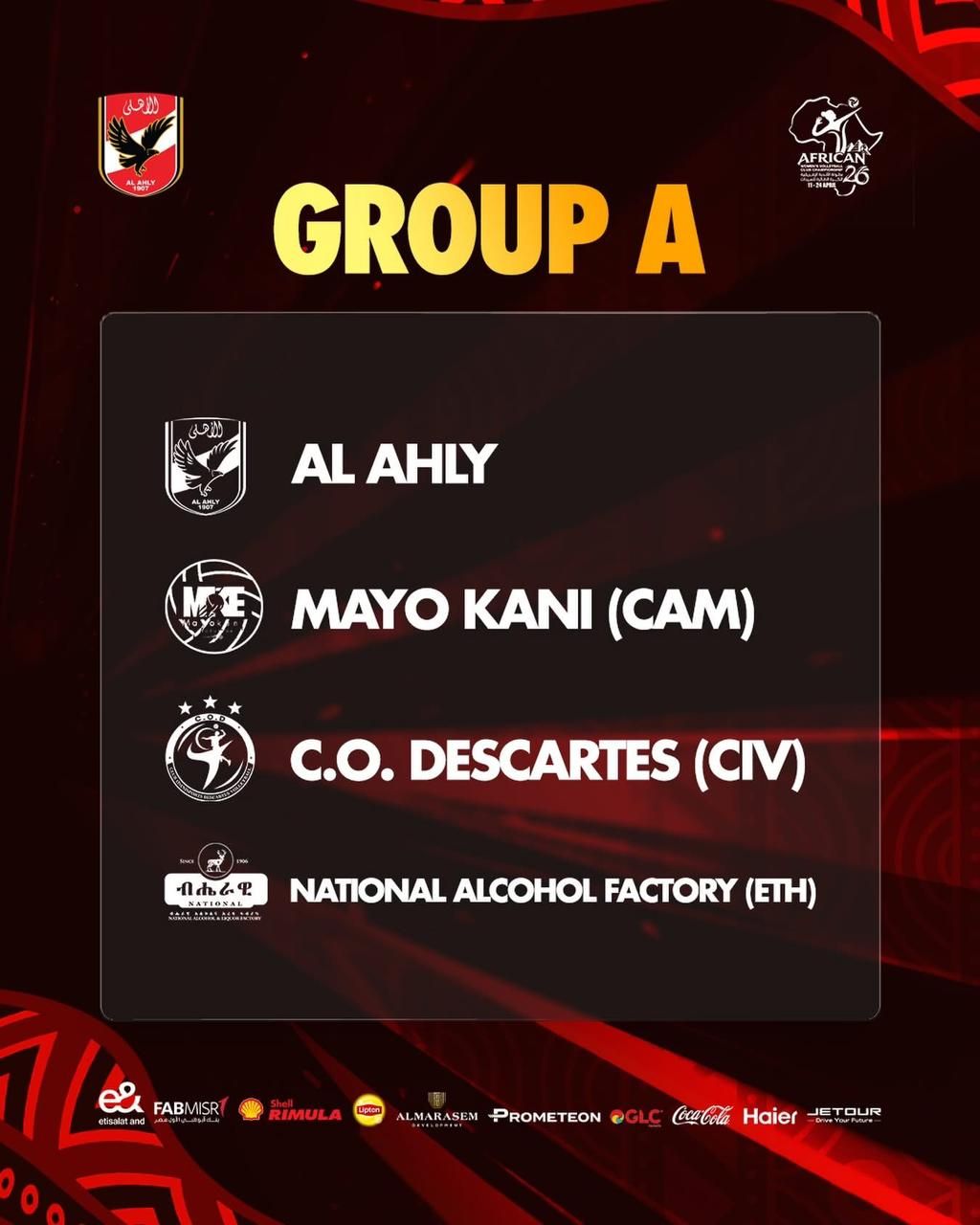 أسفرت قرعة بطولة أفريقيا للأندية لسيدات الكرة الطائرة، التي يستضيفها النادي الأهلي بدءا من غد، عن وقوع الأهلي على رأس المجموعة الأولى، بجانب كل من مايو كاني الكاميروني وسي أو ديكارت الإيفواري وناشونال الإثيوبي.